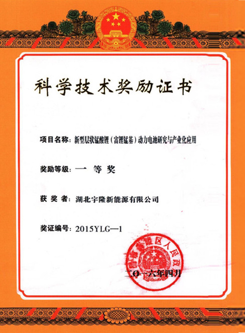 新型层状锰酸锂动力电池研究与产业化应用科技技术一等奖-